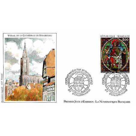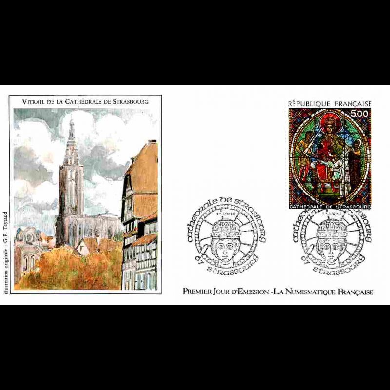 FDC LNF - Vitrail de la Cathédrale de Strasbourg - 13/4/1985 - First Day Cover - Enveloppe premier jour de France. Edition La Numismatique Française Dimensions de l'enveloppe : 175 x 100 mm