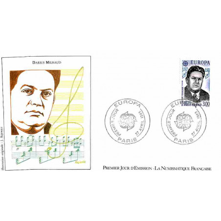 FDC LNF - Europa 85, Darius Milhaud - 27/4/1985 Paris - First Day Cover - Enveloppe premier jour de France. Edition La Numismatique Française Dimensions de l'enveloppe : 175 x 100 mm