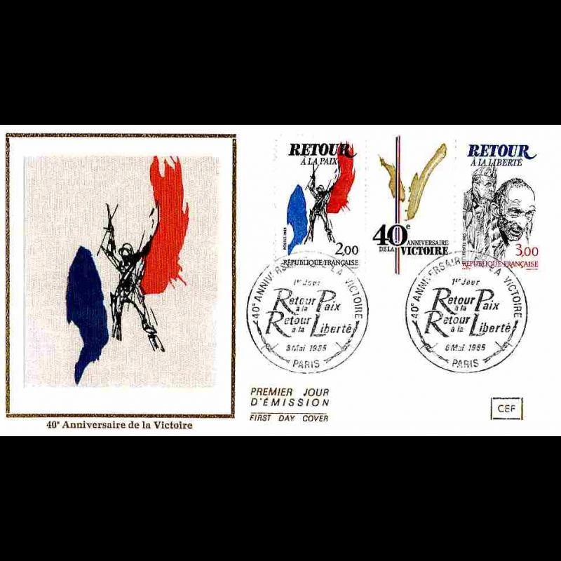 CEF soie - 40e anniversaire de la Victoire - 8/5/1985 Paris - First Day Cover - Enveloppe premier jour de France avec illustration soie.
