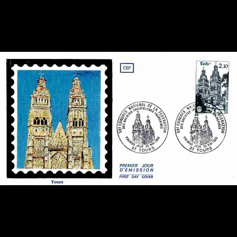 CEF soie - 58e congrès Fédéral FFAP - 25/5/1985 Tours - First Day Cover - Enveloppe premier jour de France avec illustration soie.