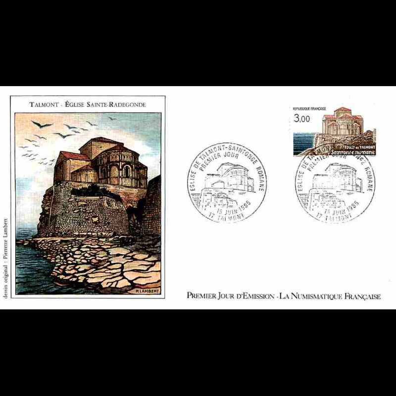 FDC LNF - Saintonge Romane, église de Talmont - 15/6/1985 - First Day Cover - Enveloppe premier jour de France. Edition La Numismatique Française Dimensions de l'enveloppe : 175 x 100 mm