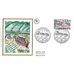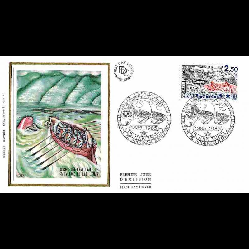 FDC soie - Sté Intl sauvetage du Lac Léman - 15/6/1985 St Gingolph - First Day Cover - Enveloppe premier jour de France avec illustration soie.