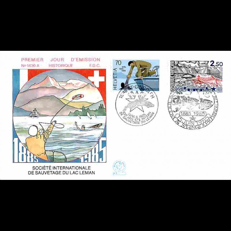 FDC n° 1430A - Sté Intl sauvetage du Lac Léman - 15/6/1985 St Gingolph (Suisse)