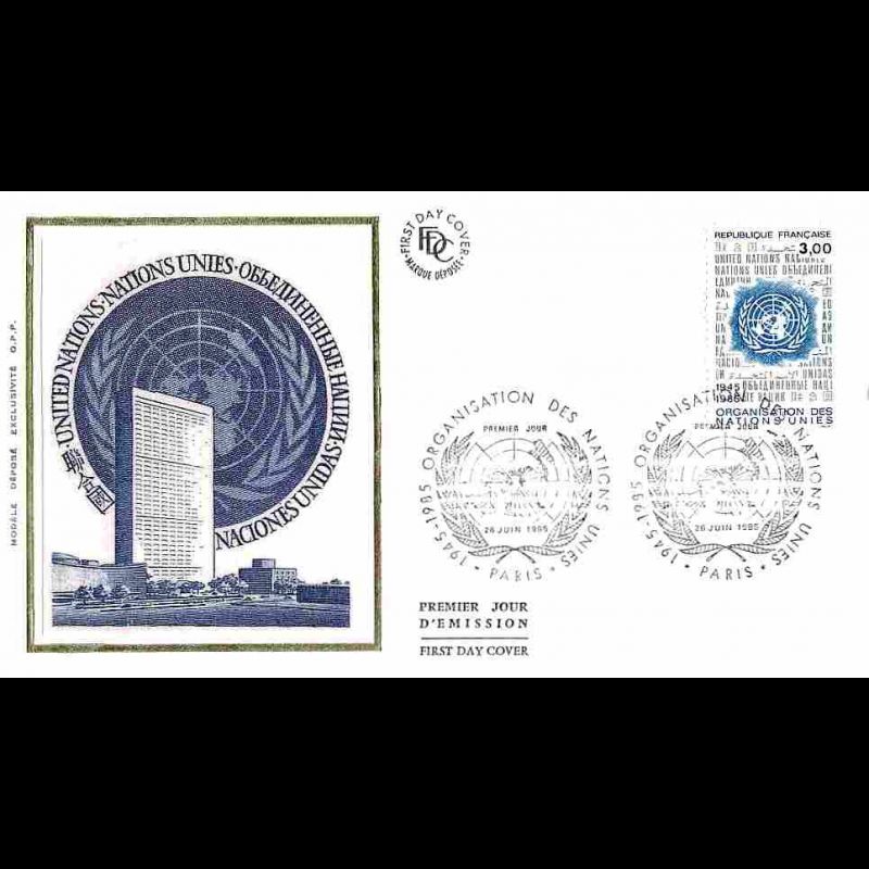 FDC soie - 40e anniversaire de l'ONU - 26/6/1985 Paris - First Day Cover - Enveloppe premier jour de France avec illustration soie.