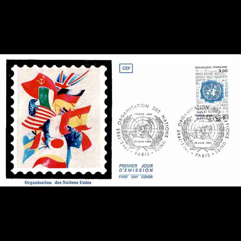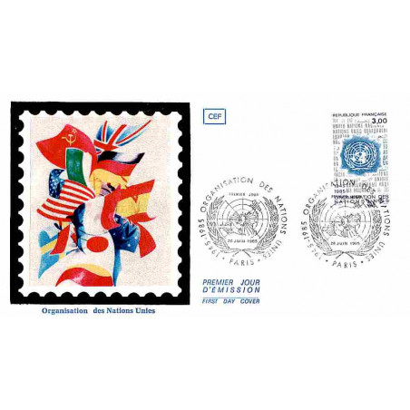 CEF soie - 40e anniversaire de l'ONU - 26/6/1985 Paris - First Day Cover - Enveloppe premier jour de France avec illustration soie.