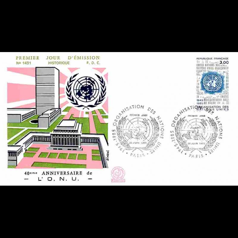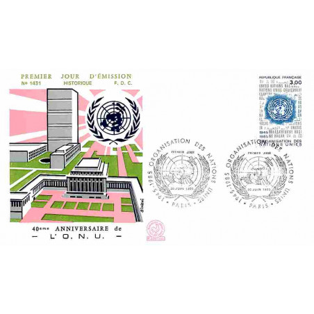 FDC n° 1431 - 40e anniversaire de l'ONU - 26/6/1985 Paris