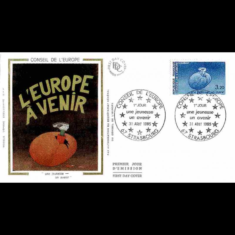 FDC soie - Conseil de l'europe (env 2/2) - 31/8/1985 Strasbourg - First Day Cover - Enveloppe premier jour de France avec illustration soie.