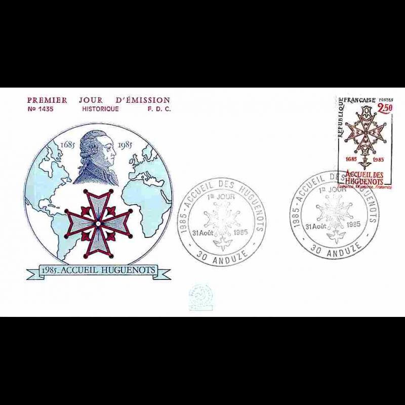 FDC n° 1435 - Accueil des Huguenots - 31/8/1985 Anduze