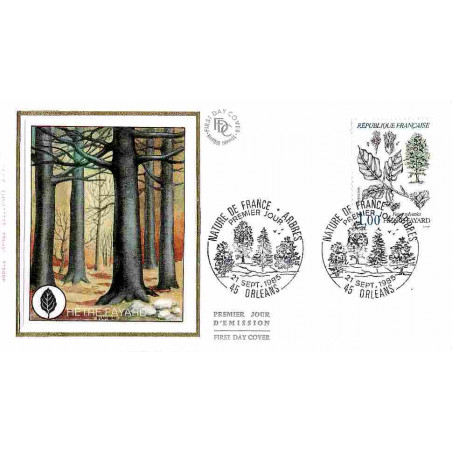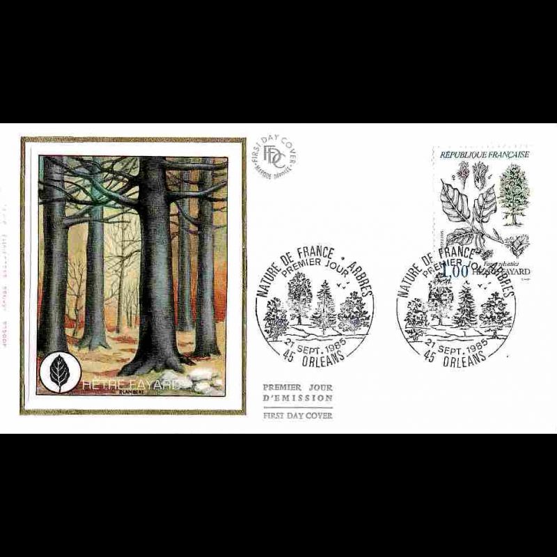 FDC soie - Protection de la nature, Hêtre Fayard - 21/9/1985 Orléans - First Day Cover - Enveloppe premier jour de France avec illustration soie.