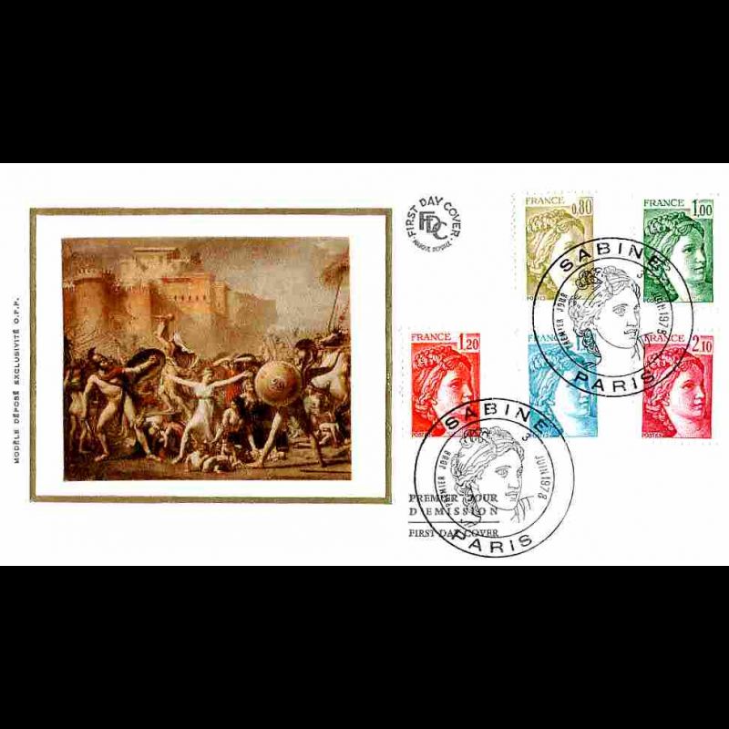FDC soie - 3e Emission "Sabine" (env 3 sur 3) - 3/6/1978 Paris - First Day Cover - Enveloppe premier jour de France avec illustration soie.
