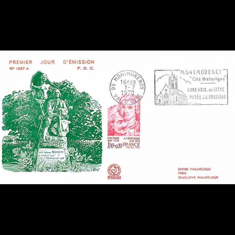 FDC n° 1087A - Voltaire et J.-J. Rousseau - 1/7/1978 Montmorency + Flamme