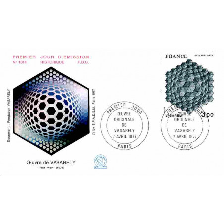 FDC n° 1014 - Tableau - Oeuvre de Vasarely - 7/4/1977 Paris