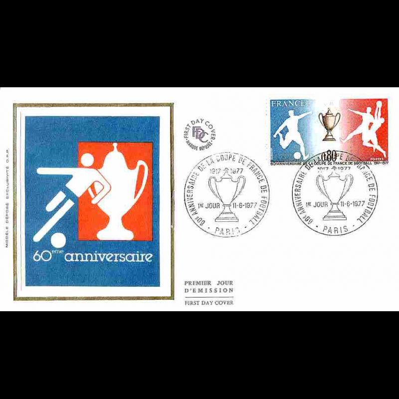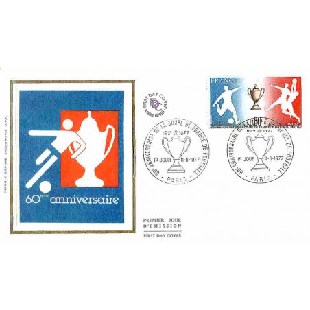 FDC soie Mod 2 - 60e Ann. de la Coupe de France de Football - 11/6/1977 Paris
