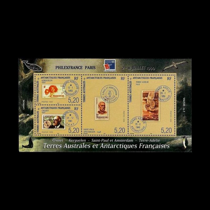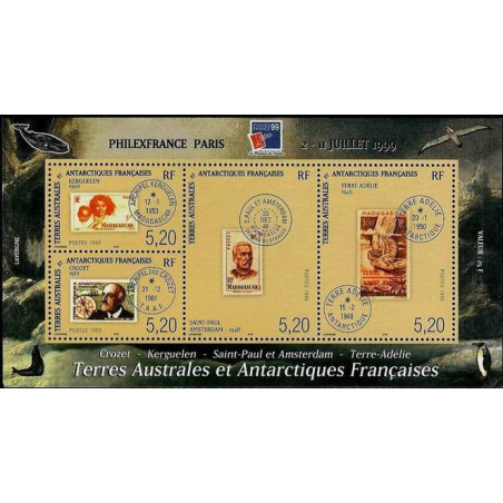 4 x 5 f. 20 multicolore sur jaunePHILEXFRANCE 99 - commémoratif 50ème anniversaire des premières oblitérations postales. PO 260 à 263.