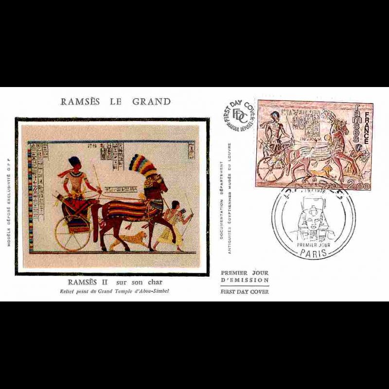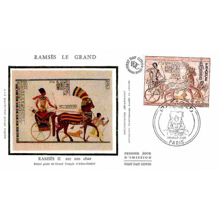 FDC soie - Exposition Ramsès II à Paris - 4/9/1976 Paris - First Day Cover - Enveloppe premier jour de France avec illustration soie.