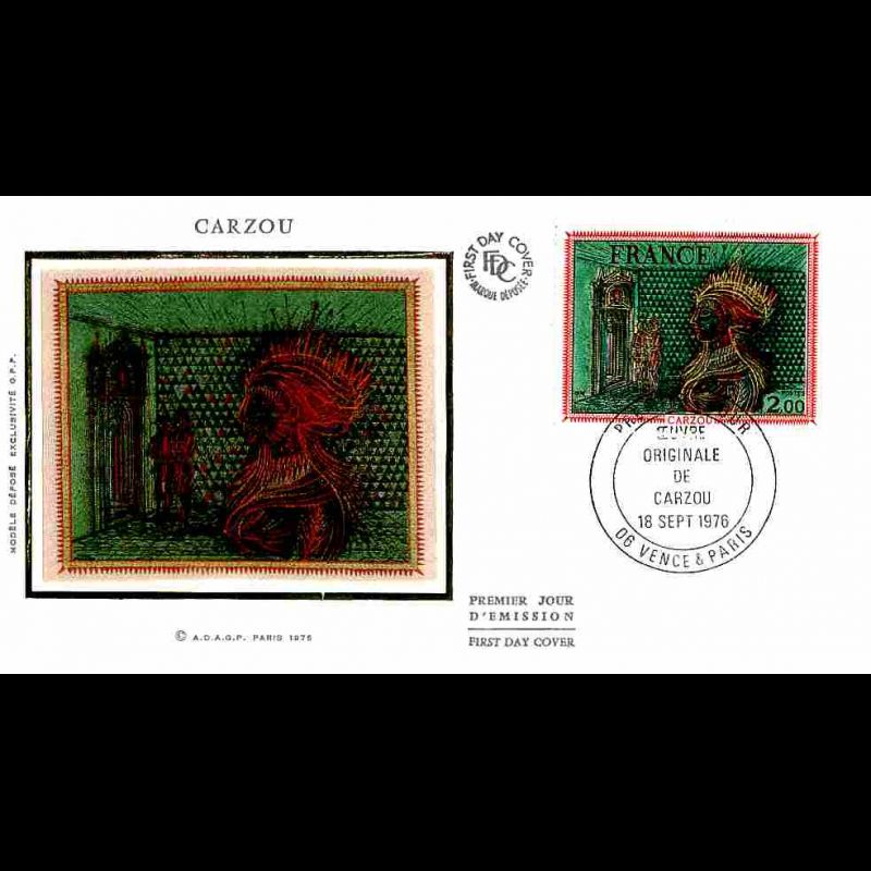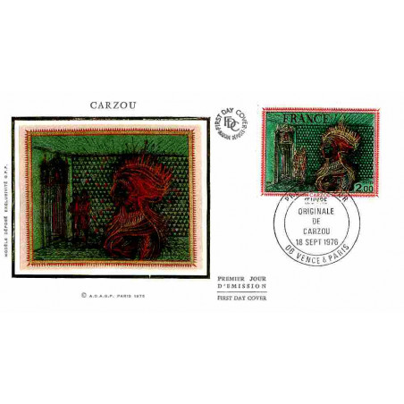 FDC soie - Carzou - oeuvre originale - 18/9/1976 Vence et Paris - First Day Cover - Enveloppe premier jour de France avec illustration soie.