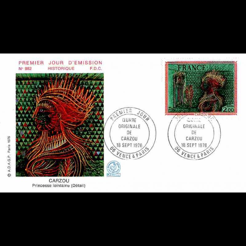 FDC n° 982 - Carzou - oeuvre originale - 18/9/1976 Vence et Paris