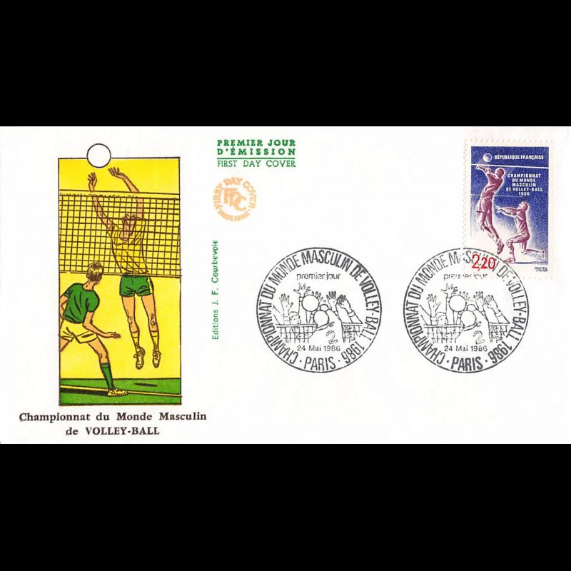 FDC JF - Championnat du Monde masculin de volley ball, Paris 24/5/86 - First Day Cover - Enveloppe premier jour de France. Edition Jean Farcigny Dimensions de l'enveloppe : 150 x 90 mm