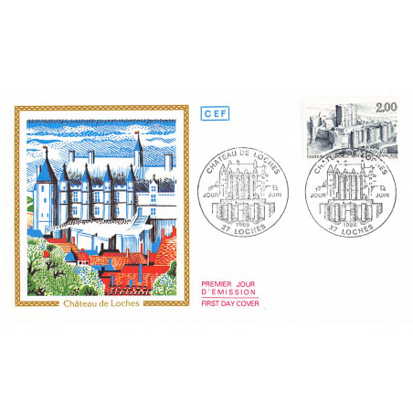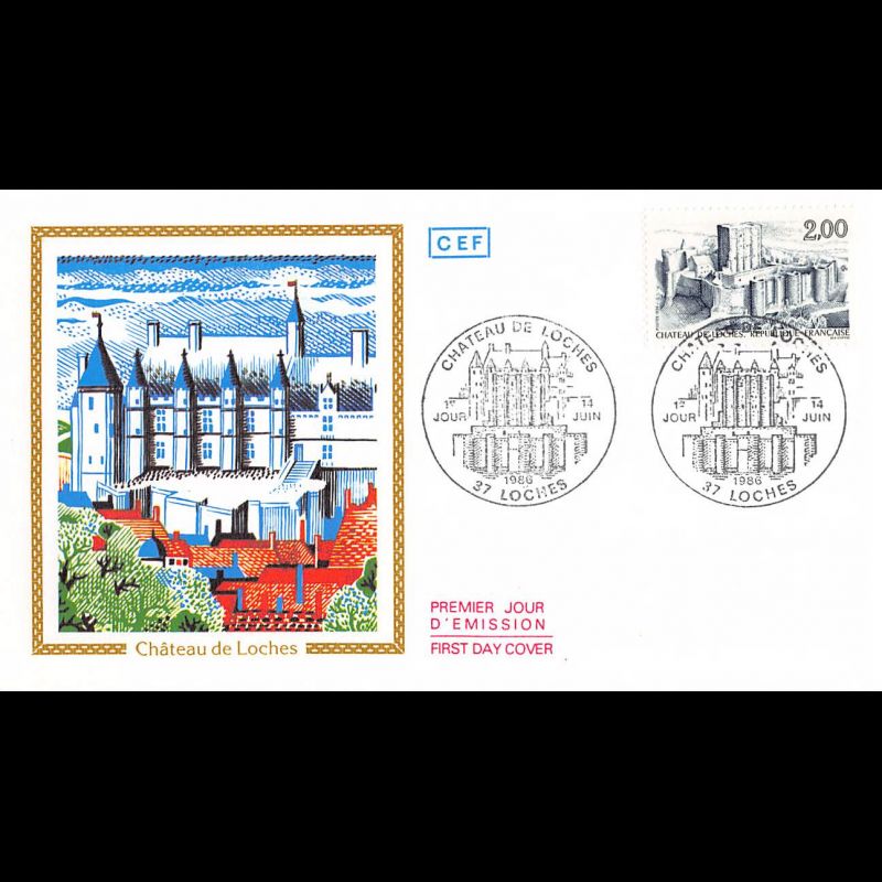 CEF - Le Château de Loches, 14/6/86 - First Day Cover - Enveloppe premier jour de France. Edition FOS (Comité d’œuvres sociales et d’entraide au profit des postiers et de ses adhérents) Dimensions de l'enveloppe : 165 x 95 mm