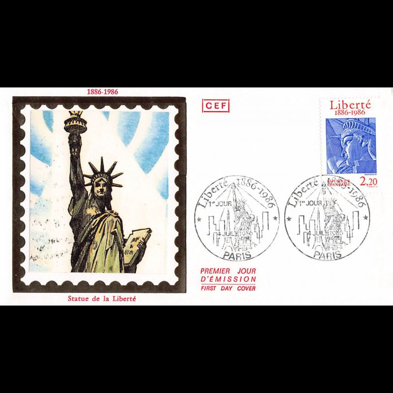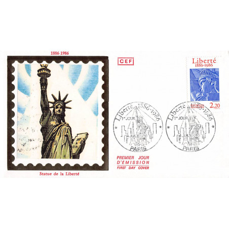 CEF soie - Centenaire de la Statue de la Liberté, Paris 4/7/86 - First Day Cover - Enveloppe premier jour de France avec illustration soie.