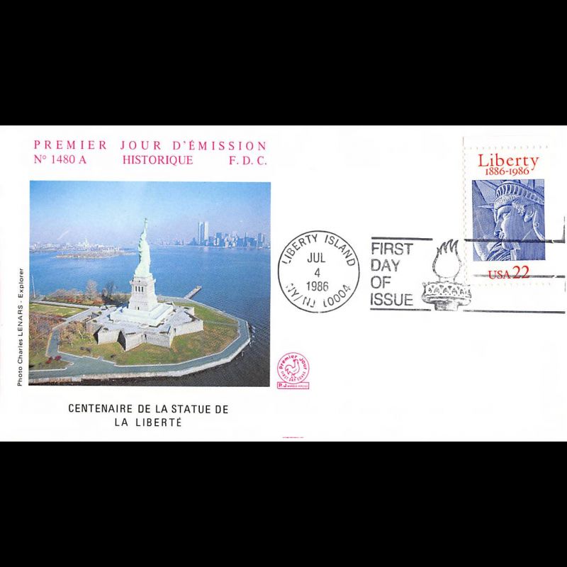FDC n° 1480A - Centenaire de la Statue de la Liberté, New York 4/7/86