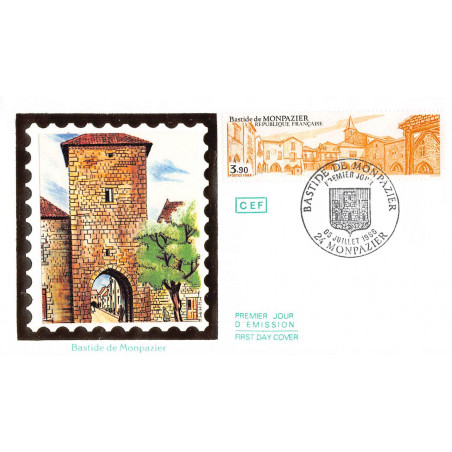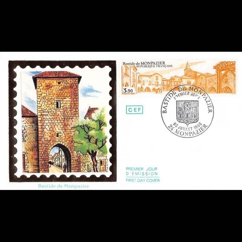 CEF soie - La Bastide de Monpazier, 5/7/86 - First Day Cover - Enveloppe premier jour de France avec illustration soie.