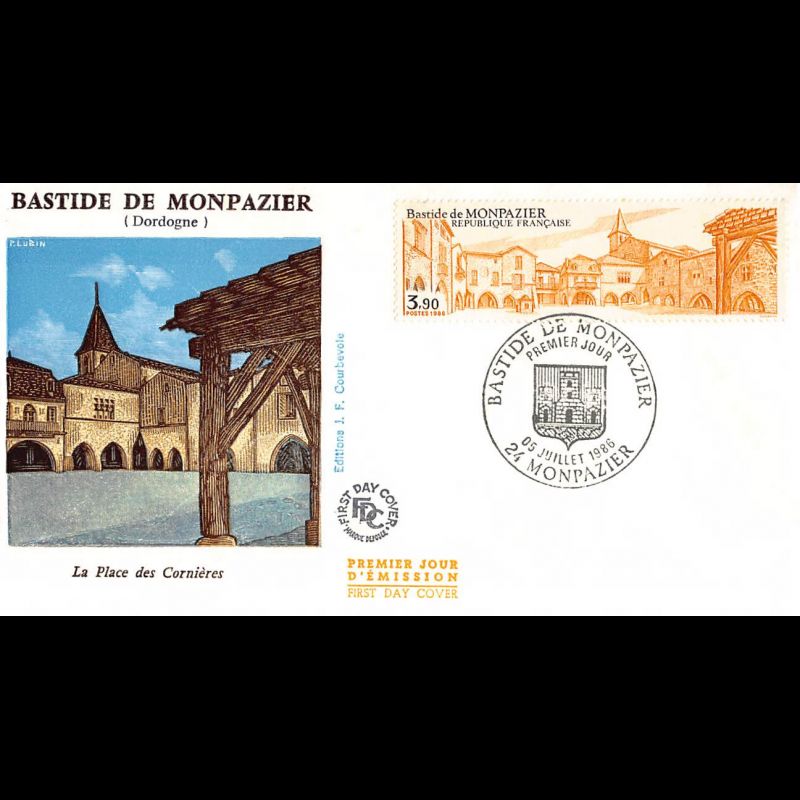 FDC JF - La Bastide de Monpazier, 5/7/86 - First Day Cover - Enveloppe premier jour de France. Edition Jean Farcigny Dimensions de l'enveloppe : 150 x 90 mm