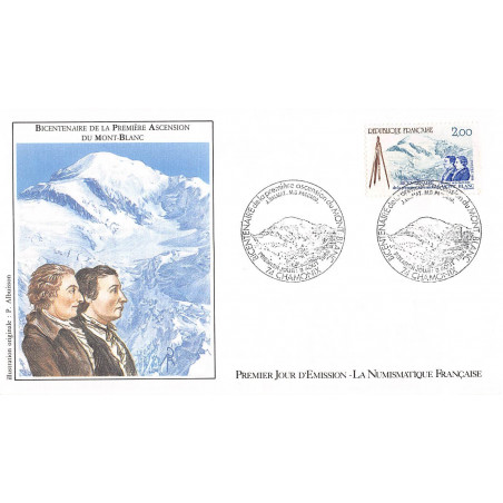 FDC LNF - Bicentenaire de l'Ascension du Mont-Blanc, Chamonix 8/8/86 - First Day Cover - Enveloppe premier jour de France. Edition La Numismatique Française Dimensions de l'enveloppe : 175 x 100 mm