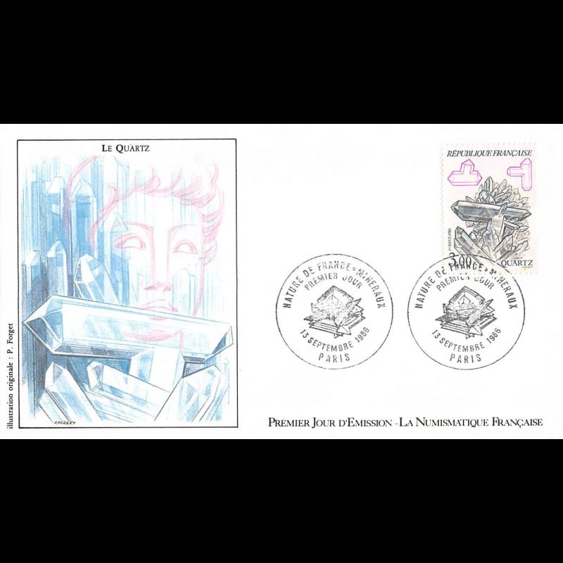 FDC LNF - Minéraux - Quartz, Paris 13/9/86 - First Day Cover - Enveloppe premier jour de France. Edition La Numismatique Française Dimensions de l'enveloppe : 175 x 100 mm