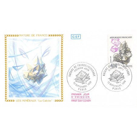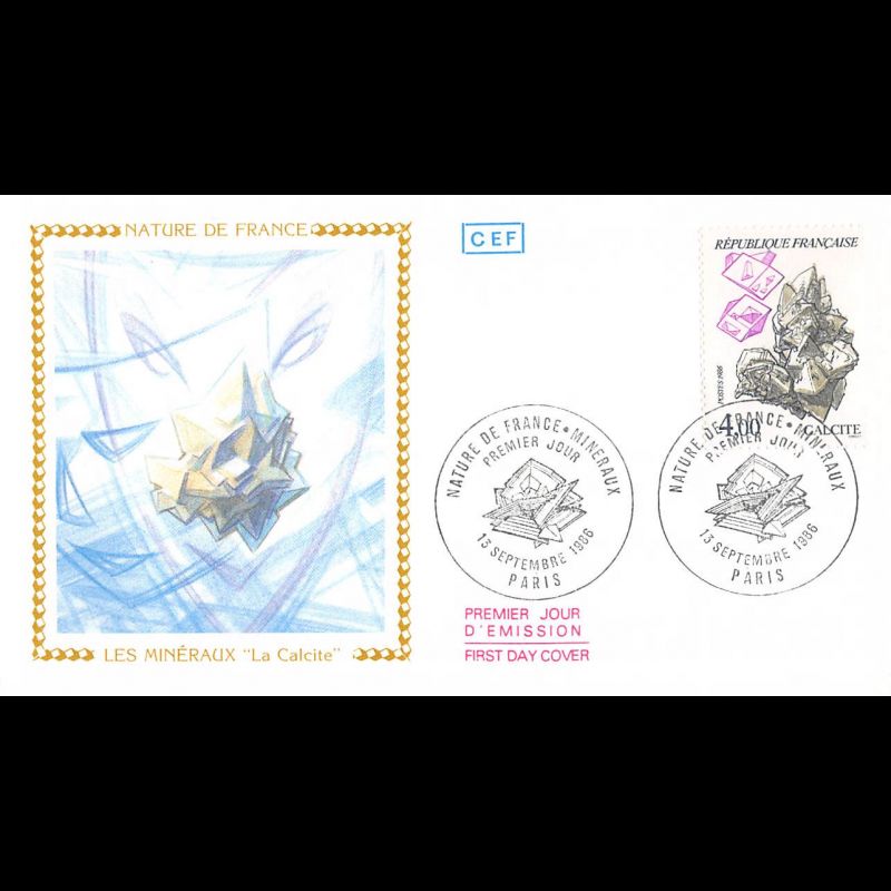 CEF - Minéraux - Calcite, Paris 13/9/86 - First Day Cover - Enveloppe premier jour de France. Edition FOS (Comité d’œuvres sociales et d’entraide au profit des postiers et de ses adhérents) Dimensions de l'enveloppe : 165 x 95 mm
