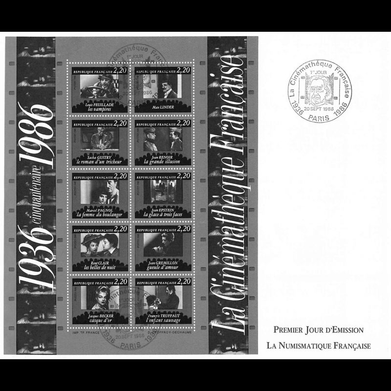 FDC GF LNF - La Cinémathèque Française (le bloc), Paris 20/9/86