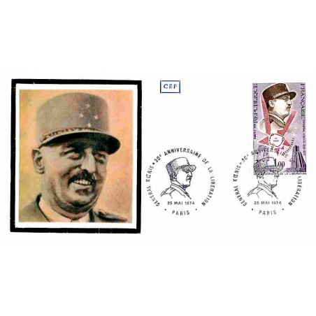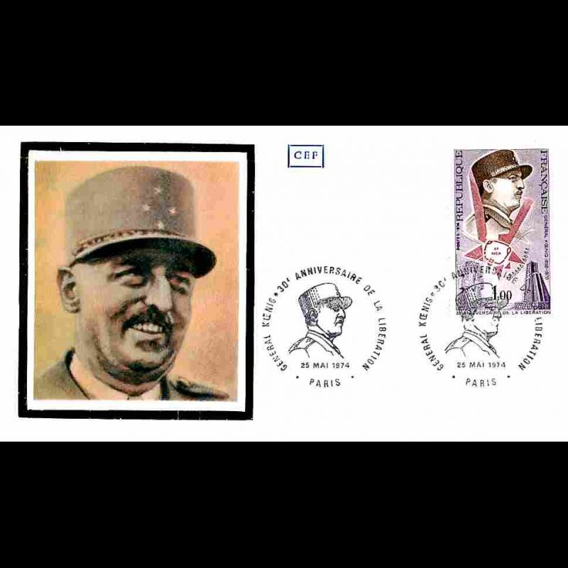 CEF soie - Général Koenig - 25/5/1974 Paris - First Day Cover - Enveloppe premier jour de France avec illustration soie.