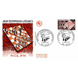 FDC JF - Jeux olympiques d'échecs - 8/6/1974 Nice - First Day Cover - Enveloppe premier jour de France. Edition Jean Farcigny Dimensions de l'enveloppe : 150 x 90 mm