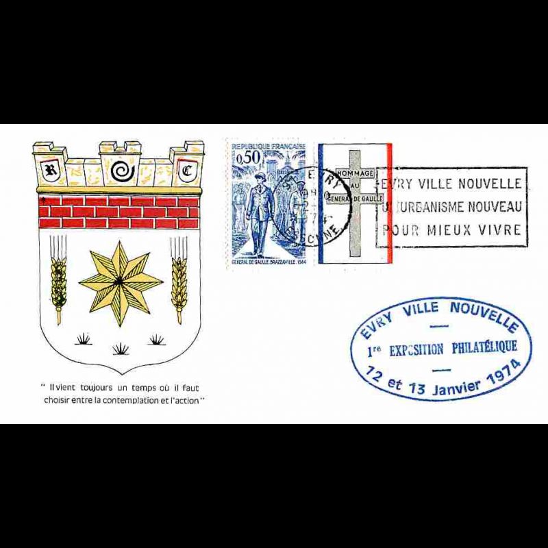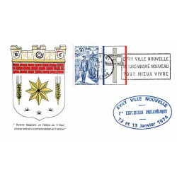 Evry ville nouvelle visuel 3, 1ére expo philatélique des 12 et 13/1/1974