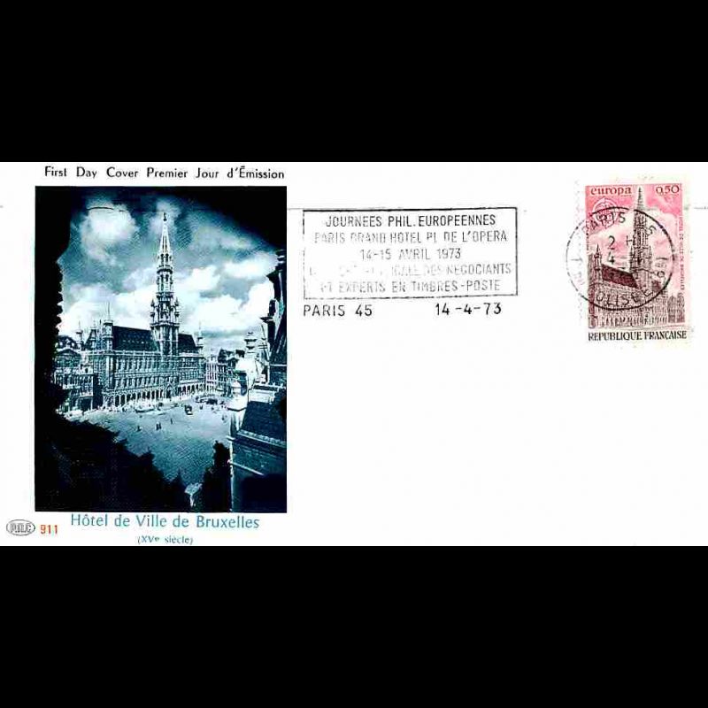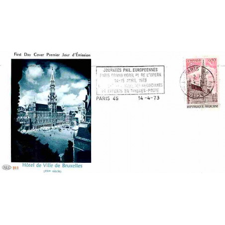 FDC PAC 911 - Europa, la grande place à Bruxelles - 14/4/1973 Paris + flamme
