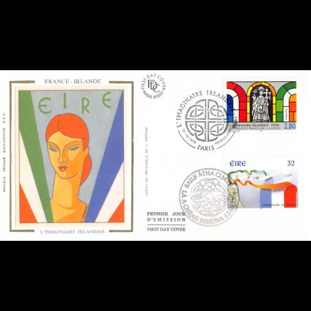 FDC soie - L'Imaginaire Irlandais (émission conjointe), oblit 12 et 16/3/96 - First Day Cover - Enveloppe premier jour de France avec illustration soie.