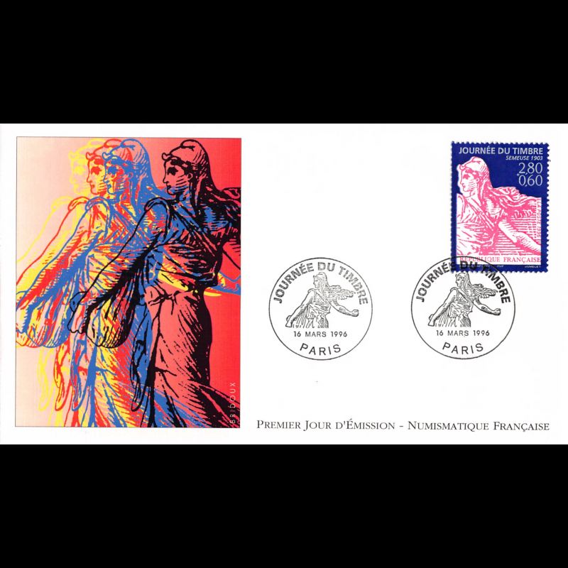 FDC LNF - Journée du Timbre - Semeuse (2990), oblit Paris 16/3/96 - First Day Cover - Enveloppe premier jour de France.