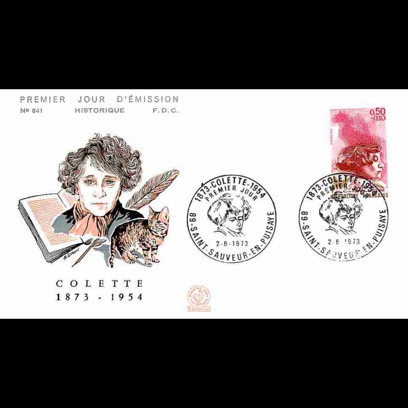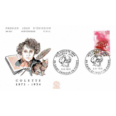 FDC n° 841 - Centenaire naissance de Colette - 2/6/1973 St Sauveur en Puisaye