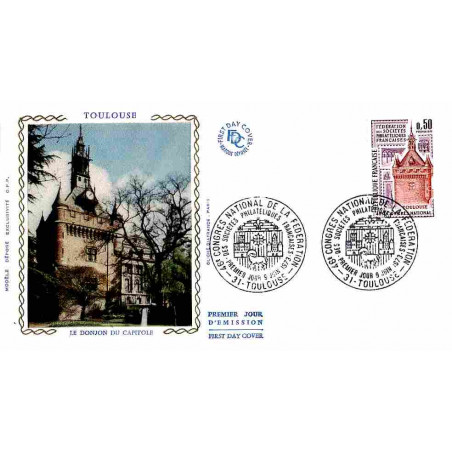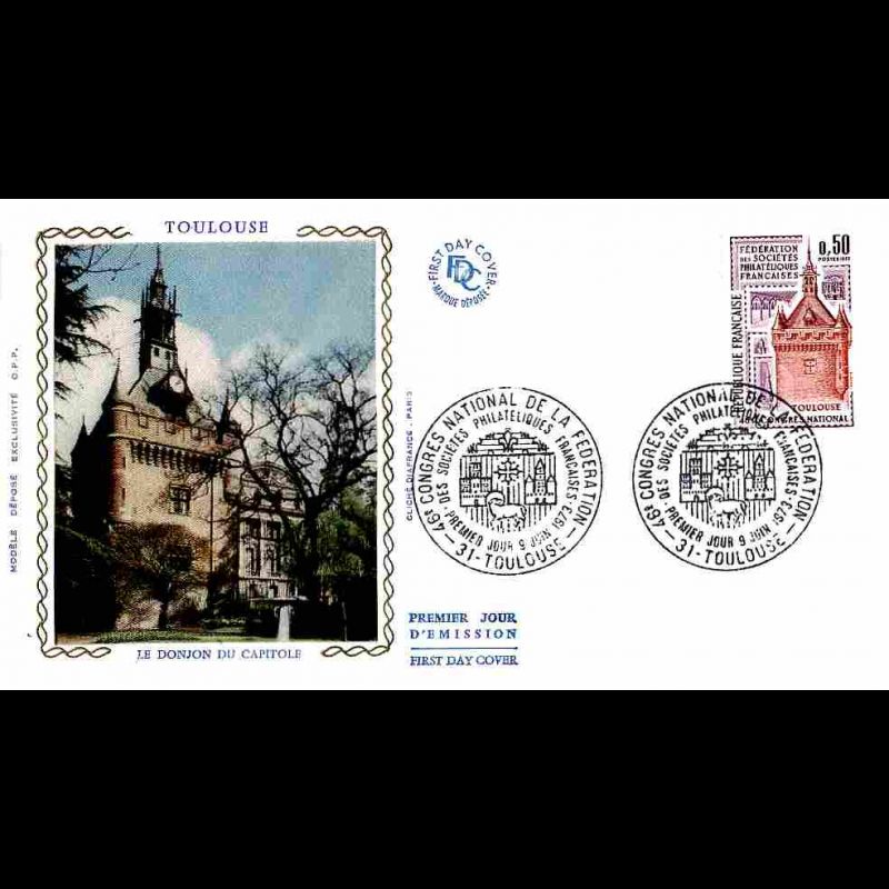 FDC soie - Congrès Philatélique fédéral de Toulouse - 9/6/1973 Toulouse - First Day Cover - Enveloppe premier jour de France avec illustration soie.