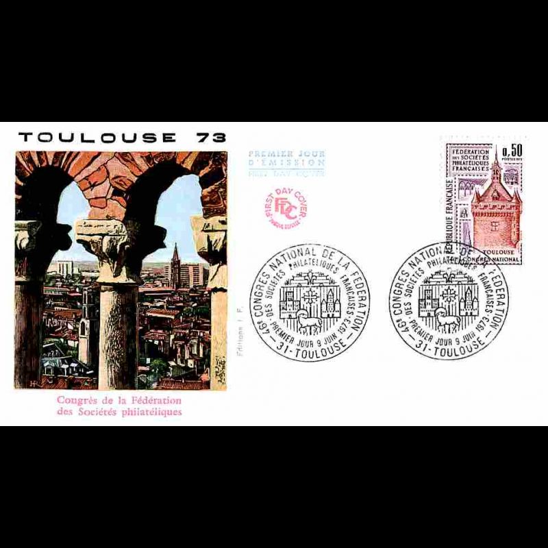 FDC JF - Congrès Philatélique fédéral de Toulouse - 9/6/1973 Toulouse - First Day Cover - Enveloppe premier jour de France.