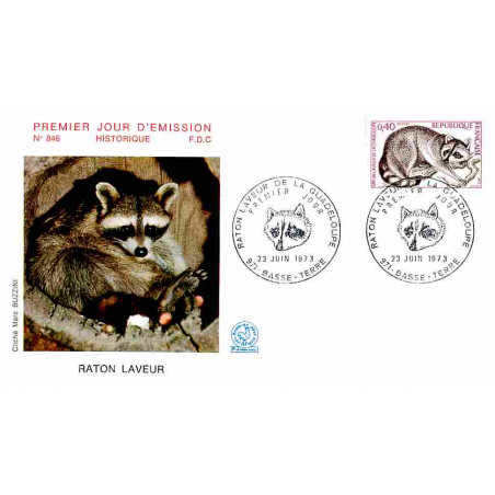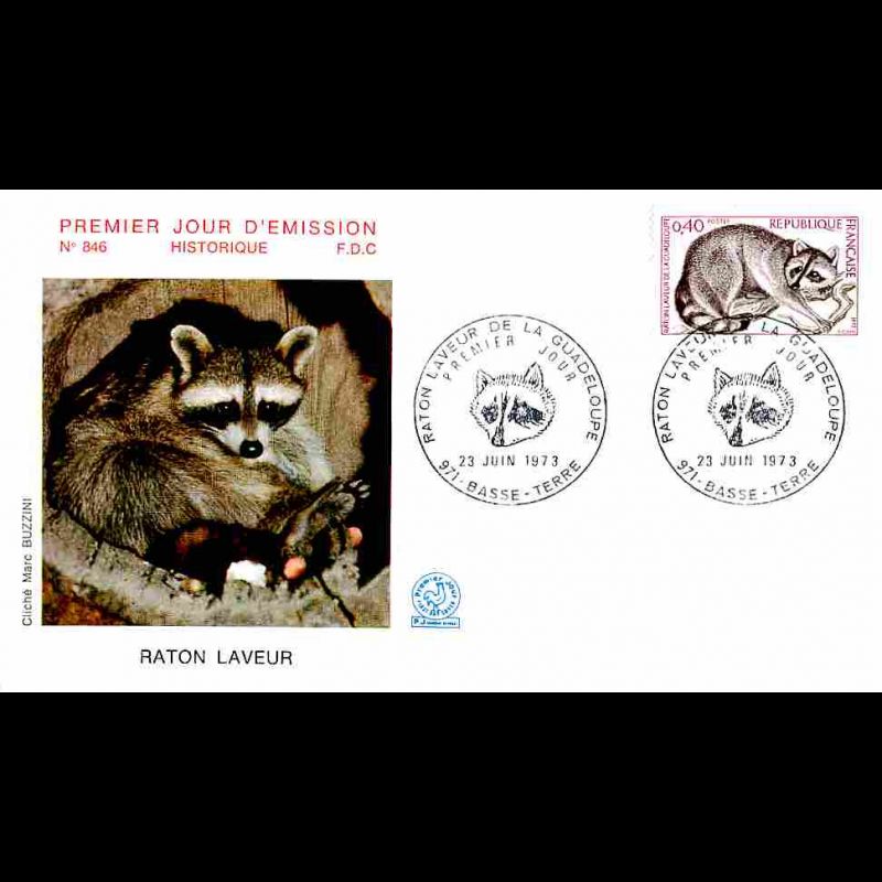 FDC n° 846 - Le raton laveur - 23/6/1973 Basse Terre