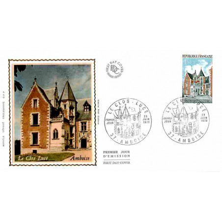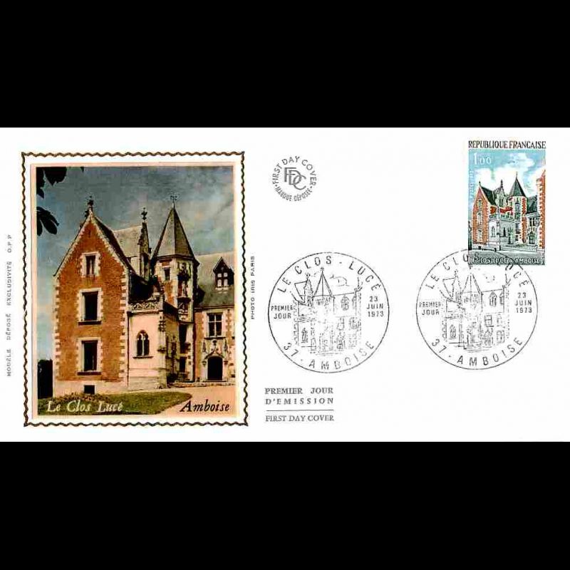 FDC soie - Amboise, le clos Lucé - 23/6//1973 - First Day Cover - Enveloppe premier jour de France avec illustration soie.