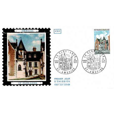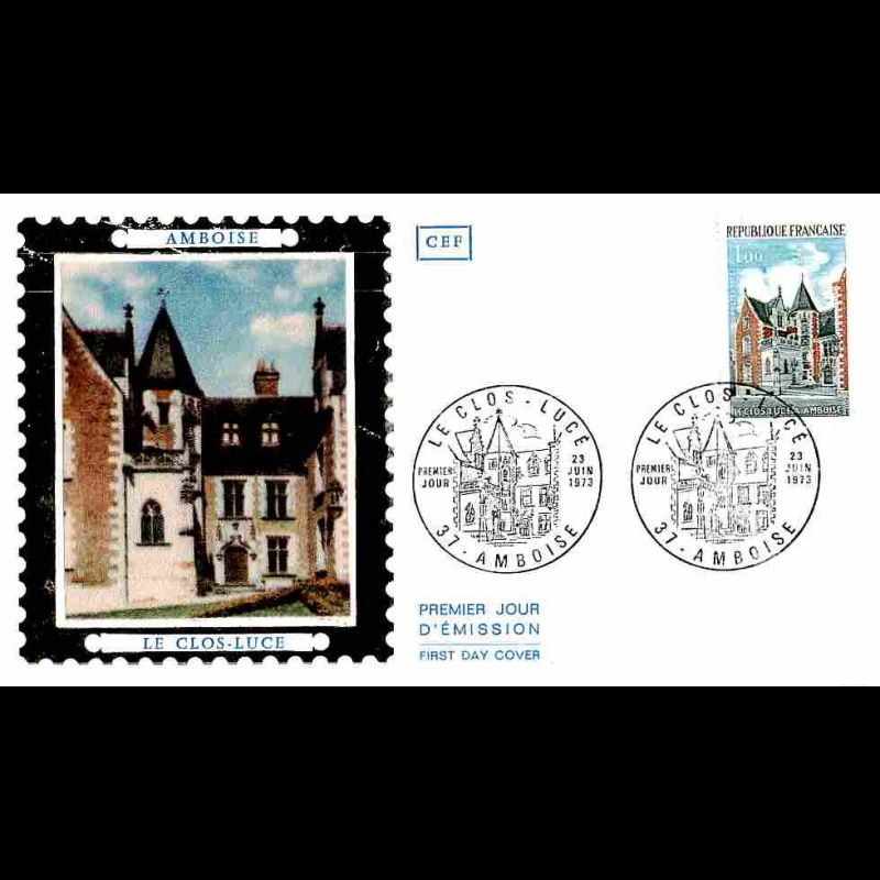 CEF soie - Amboise, le clos Lucé - 23/6//1973 - First Day Cover - Enveloppe premier jour de France avec illustration soie.