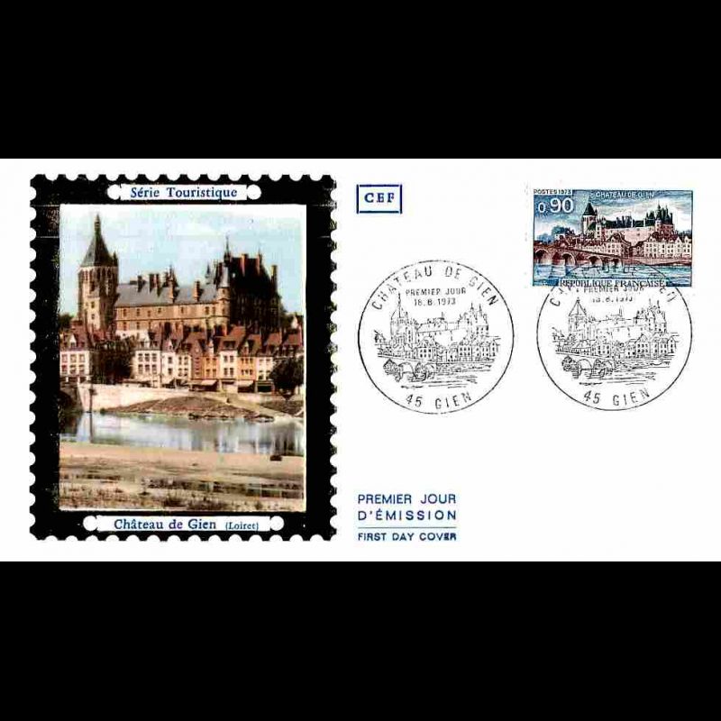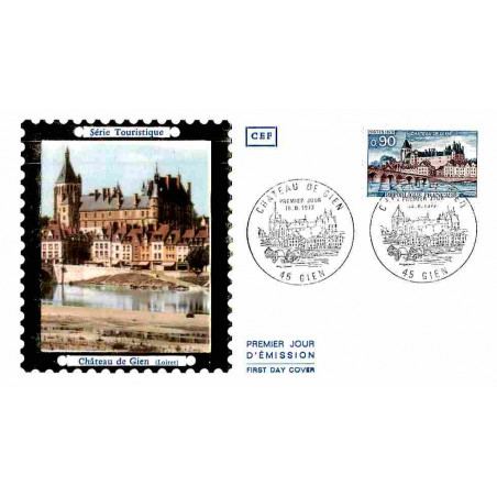 CEF soie - Gien - Le château et le pont - 18/8/1973 Gien - First Day Cover - Enveloppe premier jour de France avec illustration soie.