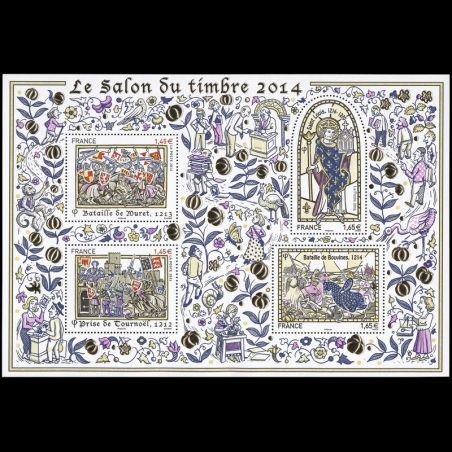 Le Salon du timbres. Paris 2014. Les grandes heures de l'histoire de France. Le bloc feuillet. (4828, 4829, 4857, 4858).