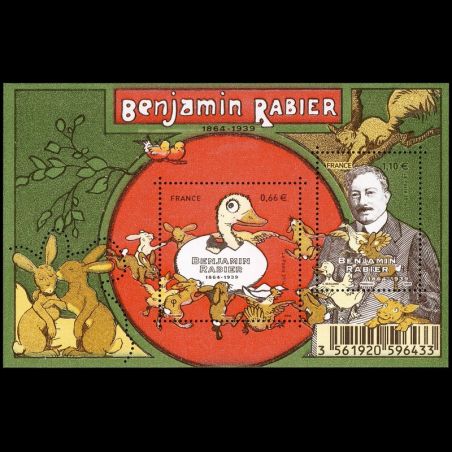 "Benjamin Rabier" (1864-1939), illustrateur français. La feuille de 2 timbres.