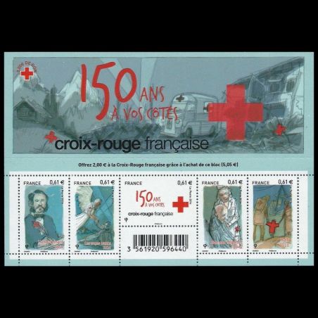 150 ans de la Croix-Rouge. Henry Dunant (1828-1910), fondateur. 1 bande de phosphore à droite. La feuille de 5 timbres.