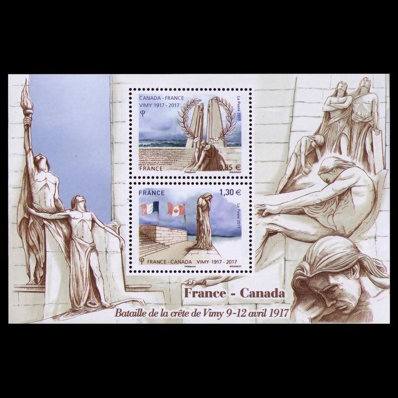 Emission commune France-Canada. Bataille de la crête Vimy (9-12 avril 1917). 2 bandes de phosphore. Le feuillet.