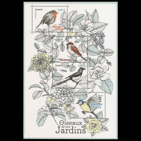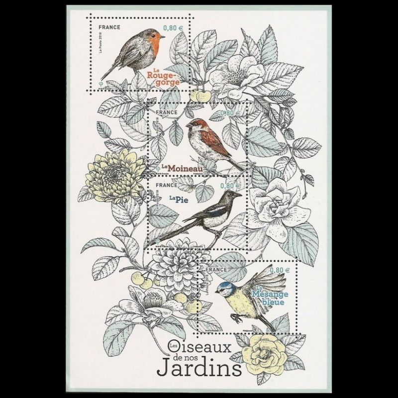 Série Nature de France (XXXII). Faune. Oiseaux de nos jardins. La feuille de 4 timbres, 110x160 mm.
