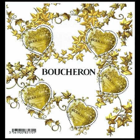 Saint-Valentin. Coeur Boucheron. Dentelure intérieure en forme de coeur. Le bloc-feuillet de 135x143 mm.